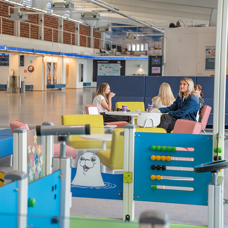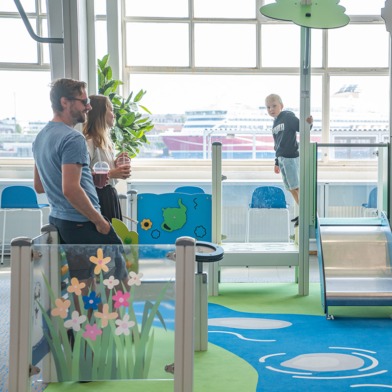 As you step into the departure lounge of the Port of Helsinki Olympia Terminal, you will undoubtedly notice a colourful and inspiring sight: a themed indoor playground designed to entertain the family's youngest members and provide unforgettable moments during the waiting time.