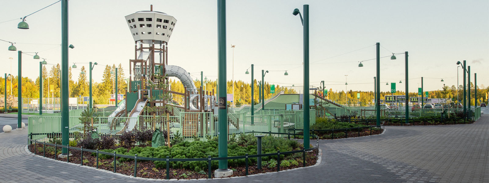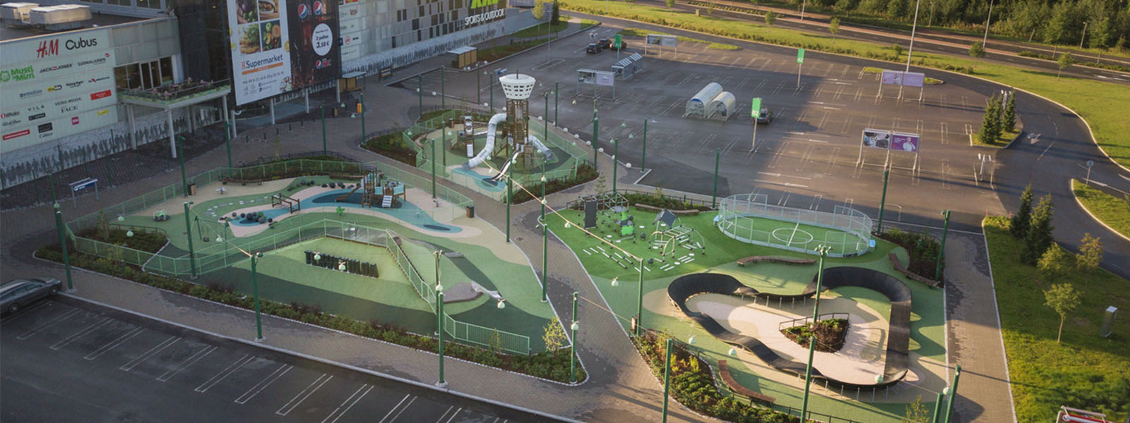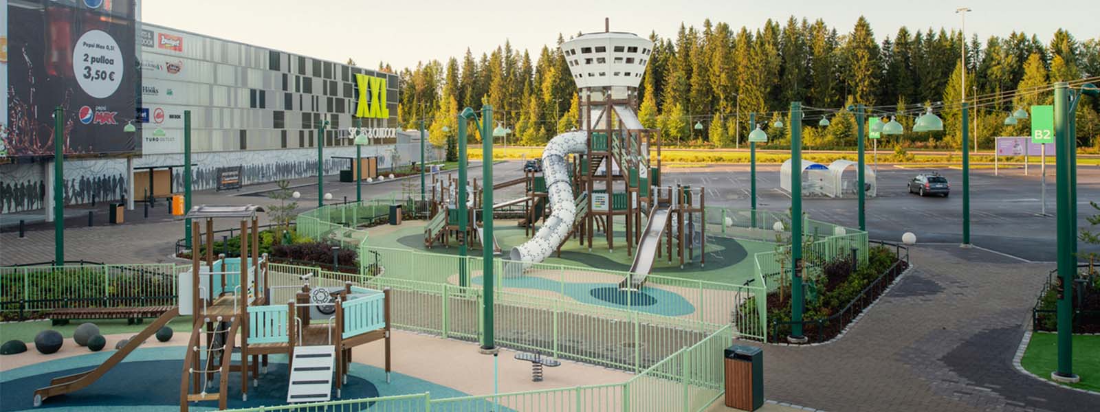 Relaxation and rambunctious fun. Climbing and a nice cup of coffee. Serenity and sports. All of these things and more are on display with Olopuisto-park at Matkus Shopping Center in Kuopio, Finland.