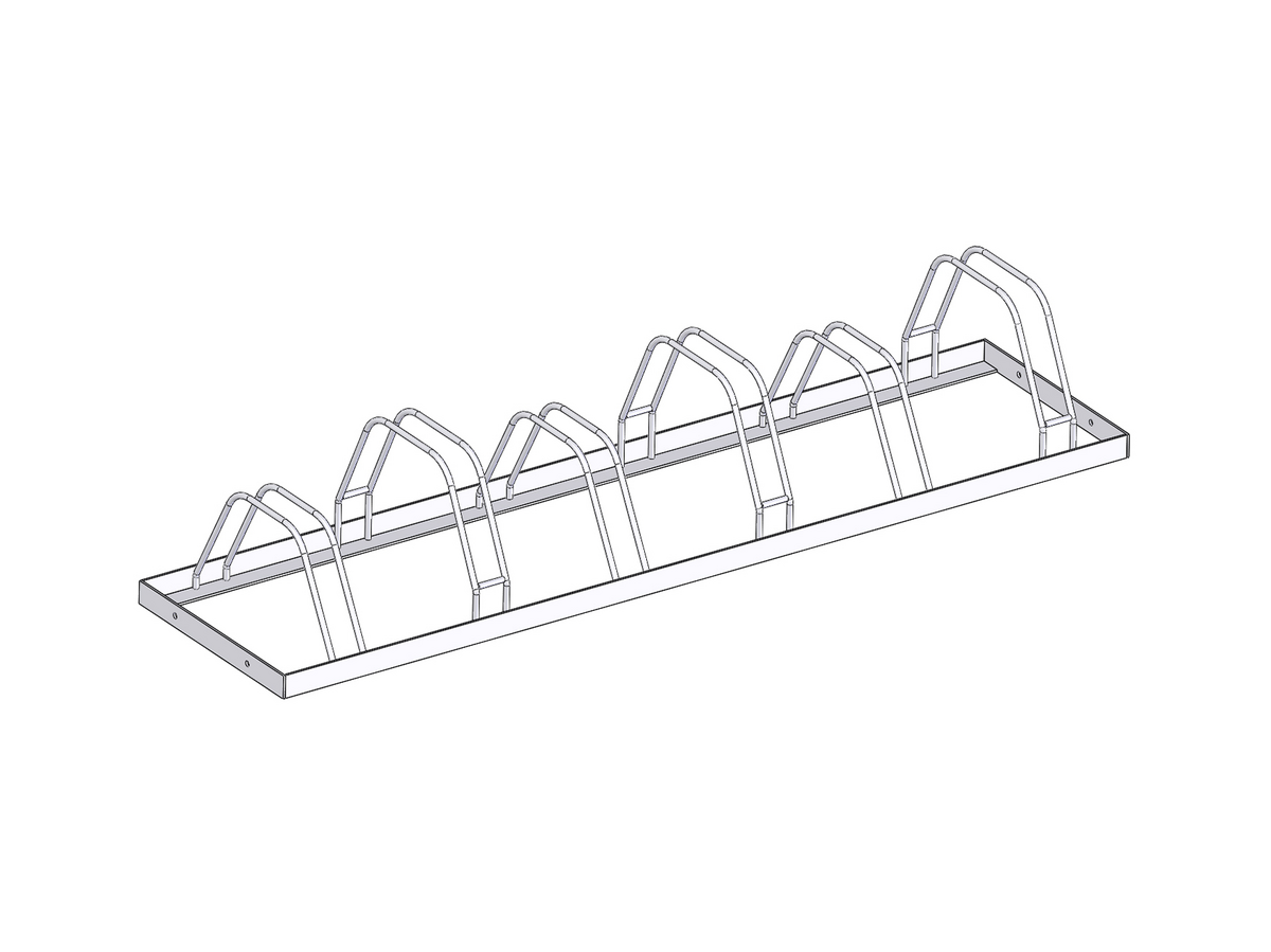 Free-standing cycle rack for six bikes. Simple cycle rack with parking on both sides. The cycle rack is free-standing and part of Lappset's wider Park range, which includes furniture.