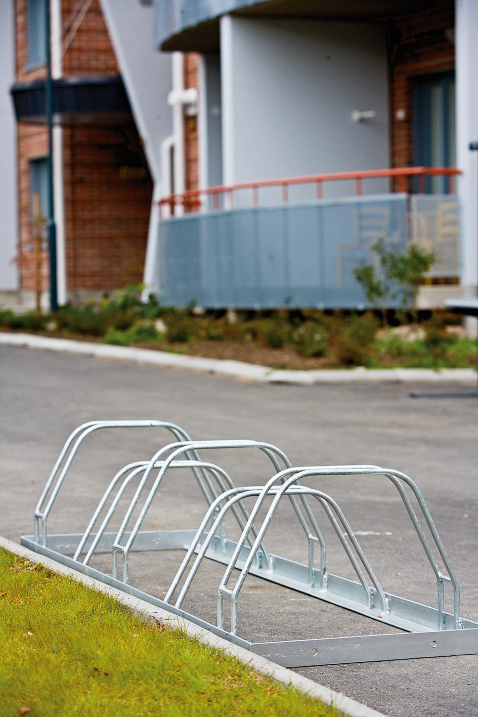 Free-standing cycle rack with 5 places for bikes. Simple cycle rack with parking on both sides. The cycle rack is free-standing and part of Lappset's wider Park range, which includes furniture.
