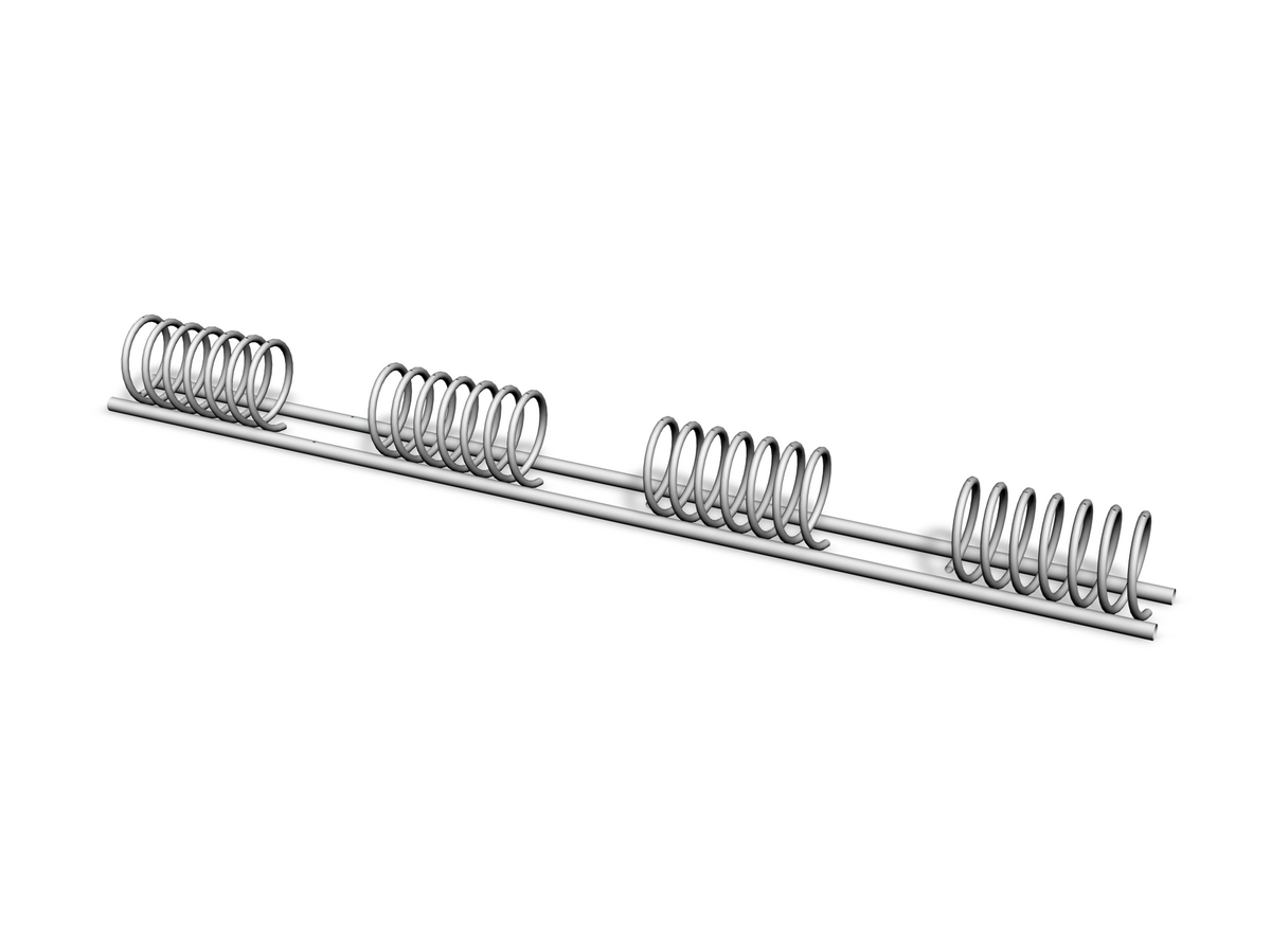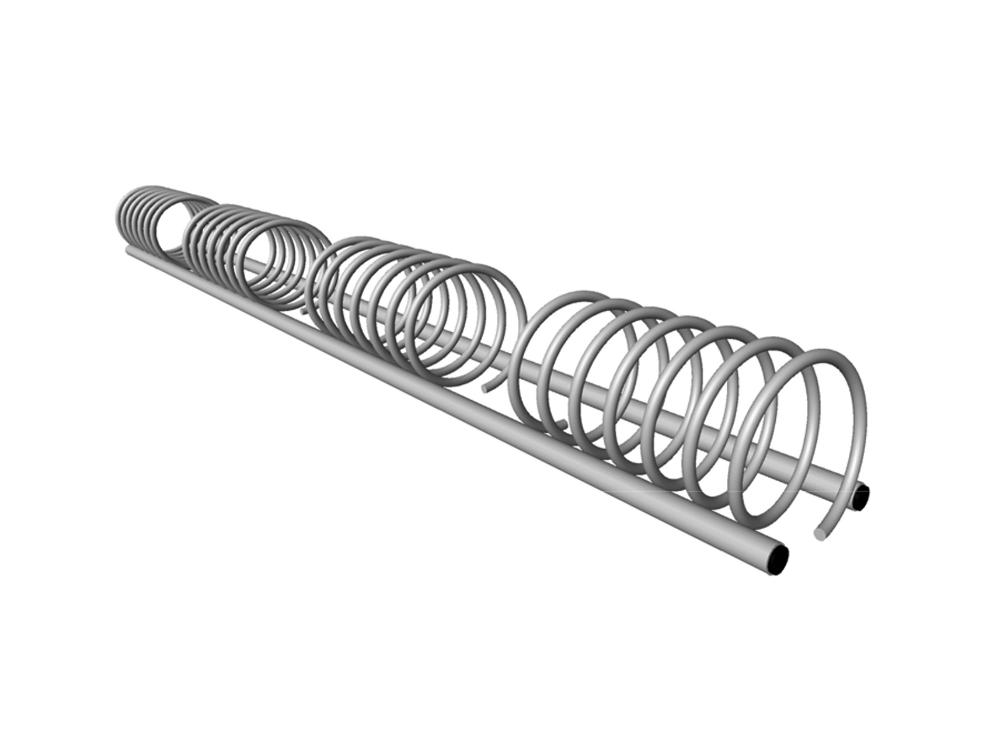 Free-standing bicycle parking. Spiral cycle rack for multiple bikes (8-13). The cycle rack is free-standing and can be approached from either side.