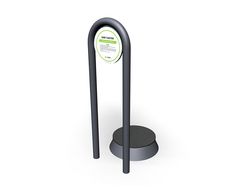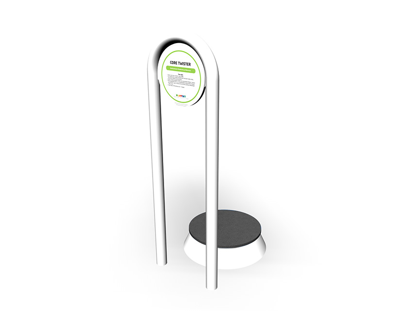 In Core twister the user stands on a round platform, which moves sideways and a bar to hold on to. Core twister is 305 mm high and the standing platform is 136 mm high. Core twister is perfect for core training improving the strength of core muscles and mobility. Core twister can be installed on loose fill material also.