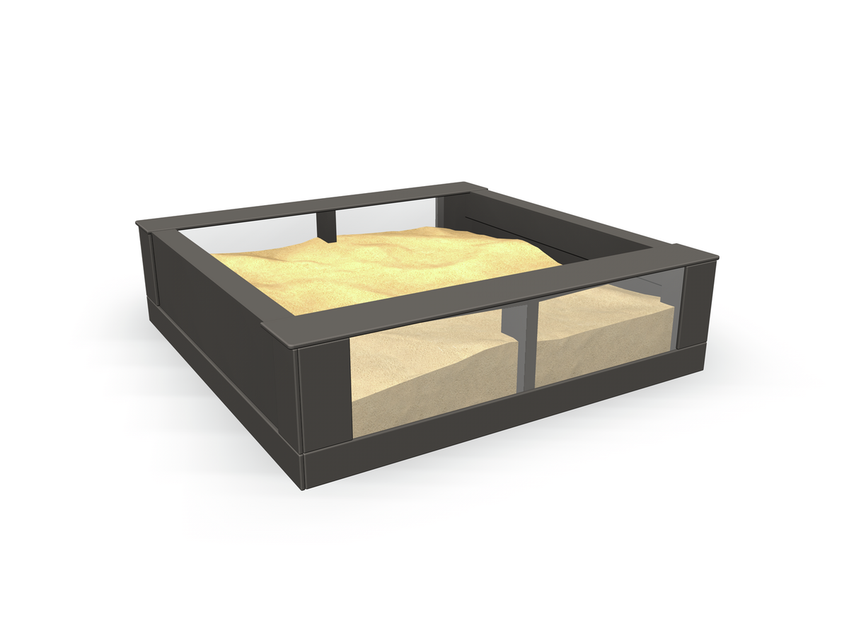 The walls of the Halo sandbox are mainly laminate, which is durable and does not require maintenance. The transparent walls are made of UV-protected, weatherproof polycarbonate. An additional benefit of the material is its high impact resistance.
