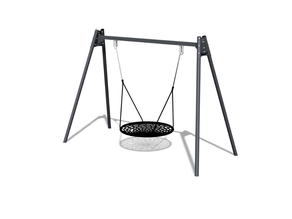 Metallic swing set with bird's nest wing seat. For a surcharge, you can order the foundation plate kit 929531SP for non-concrete installation.