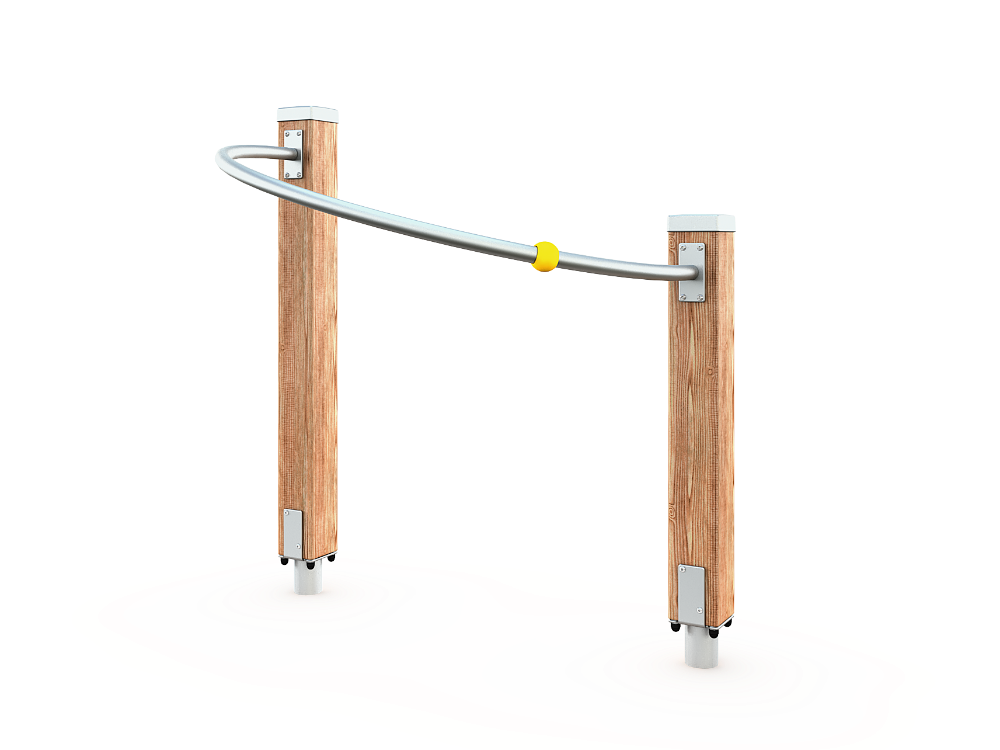 Fitness equipment intended for seniors, consisting of two upright posts and a curved metal bar holding a movable ball. The total height is 1,305 mm. T...