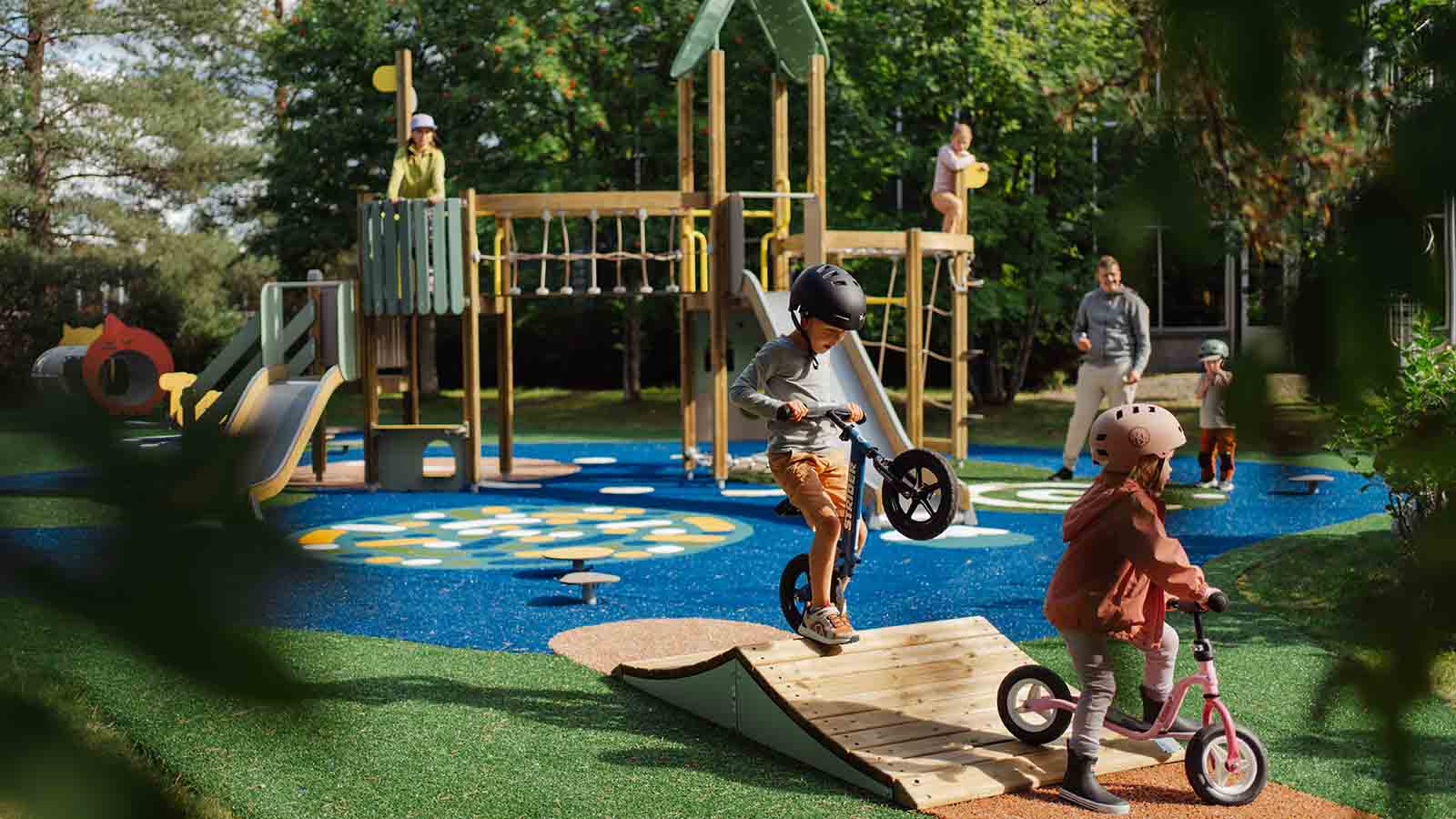 ”Genom leken lär sig barnen nya saker och utvecklar olika livsviktiga färdigheter, till exempel motoriska, kognitiva och sociala färdigheter. Väldesignade lekplatser erbjuder en säker miljö som främjar det växande barnets utveckling och föder kreativitet och fantasi”, säger Malla Haapala.